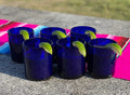 This traditional set of 6 cobalt hand blown tumbler glasses is perfect for your next fiesta! Use them to serve water, juice, soda or alcohol. The set adds a great sense of elegance to the dining room that will be enjoyed by everyone. Each blown glass may vary slightly in size and show tiny bubbles within the glass that develop from the blowing process. Lead-free, made from sustainable recycled glass. Hand-washing recommended, but dishwasher safe on the top rack. Exceptional artisan quality, thick and sturdy glass. Proudly hand made in Mexico.