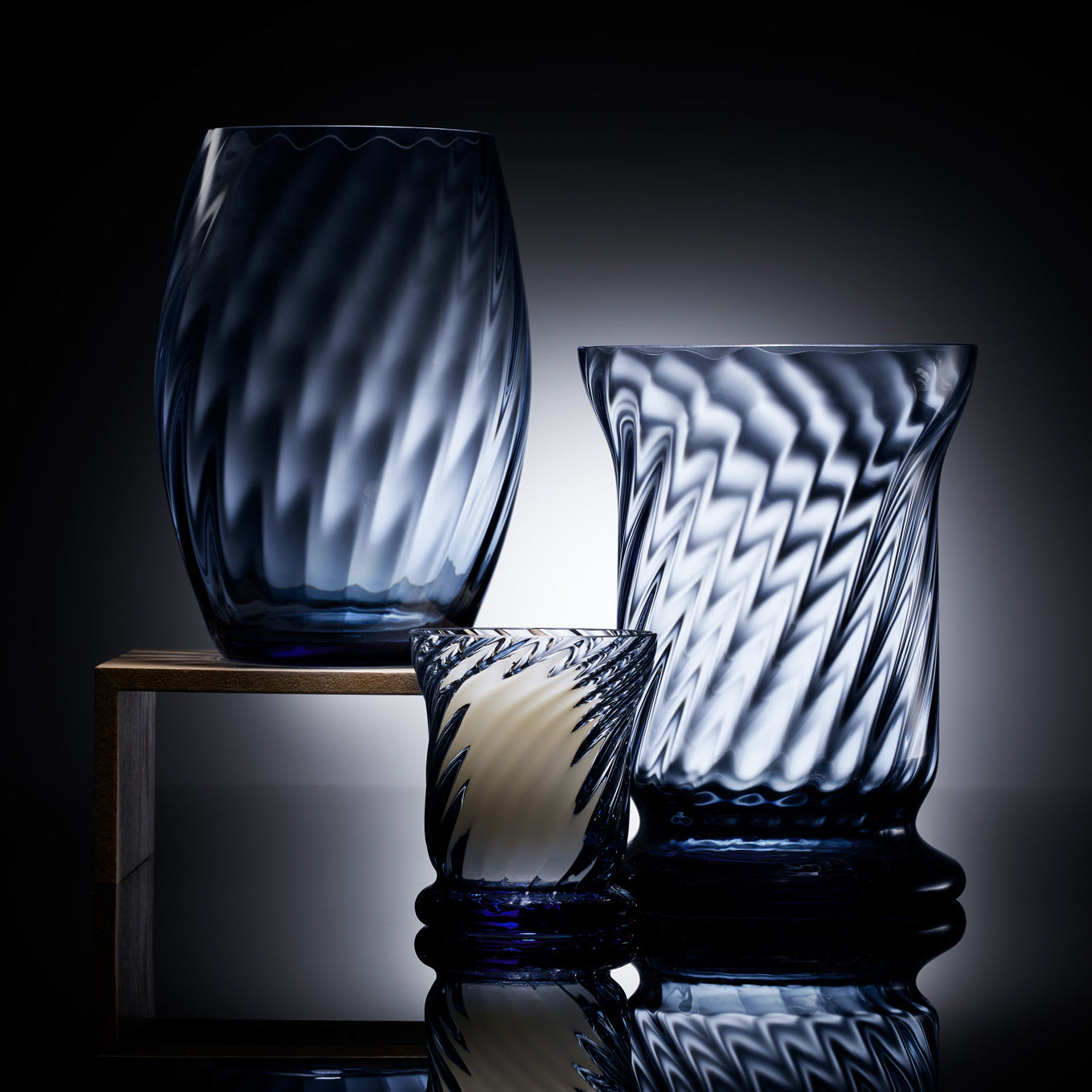 Mouth-blown beauty from a centuries-old glassworks in the rural Czech Republic. An archival form, featuring gently twisting optics that reflect candlelight exquisitely amongst the table or along the hearth. This classic hurricane holds its own or makes a statement when paired with a second hurricane or set of matching votives.
