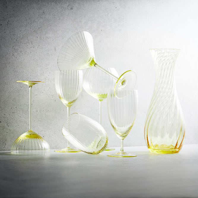 Mouth-blown beauties from a centuries-old glassworks in the rural Czech Republic. Archival forms, elongated and elevated for a very modern feel, these are glasses unlike any you've held and they're ours alone.The optic bowls artfully capture the light, playfully reflecting it back, while the elegant stems fit effortlessly in your hands. Use them as water goblets, cocktail glasses, or iced tea vessels; these glasses demand to be savored every day of the week.