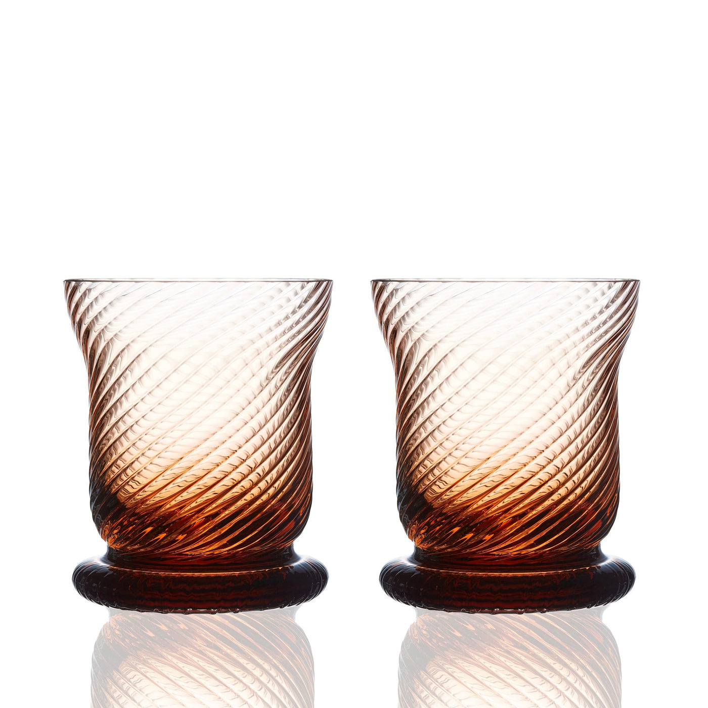 These votive holders feature gently twisting optics that reflect candlelight exquisitely amongst the table or along the hearth. We also love to use them as petite vases to scatter across a table or around a room.