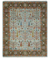 Ready to Ship Tree of Life Hand Knotted Silver, Brown and Rust Traditional Oushak Wool Rug
