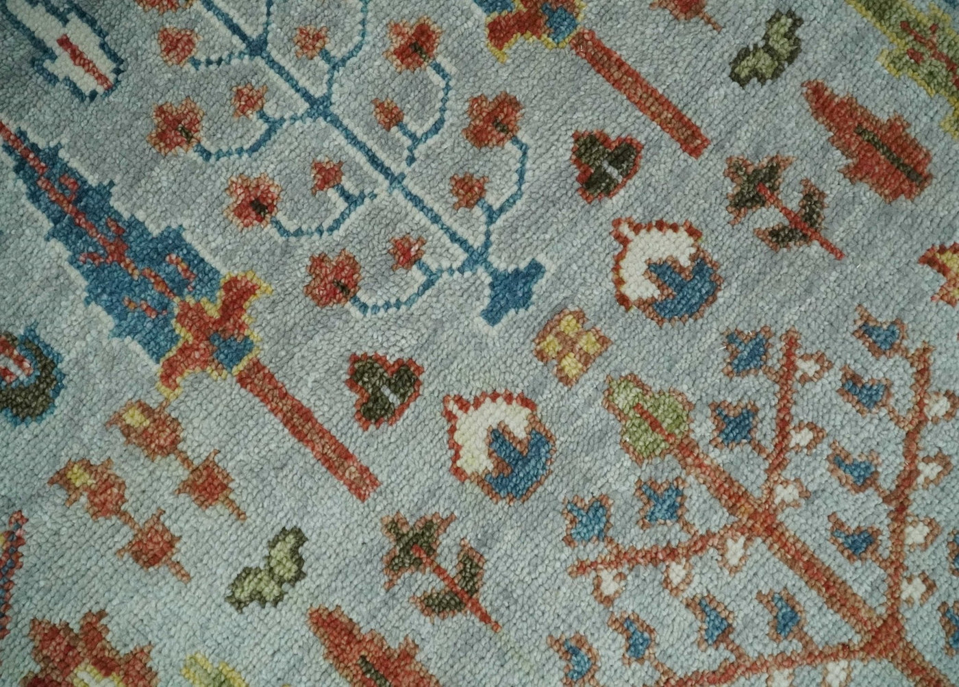 - Ready to Ship Tree of Life Hand Knotted Silver, Brown and Rust Traditional Oushak Wool Rug