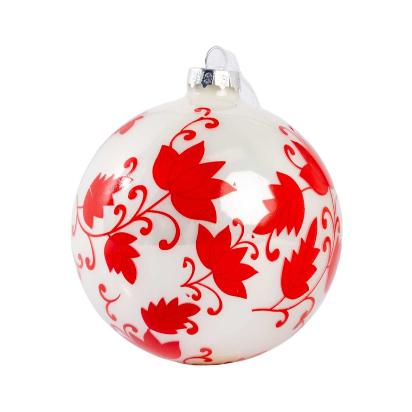 Red & White Floral Ball Ornament