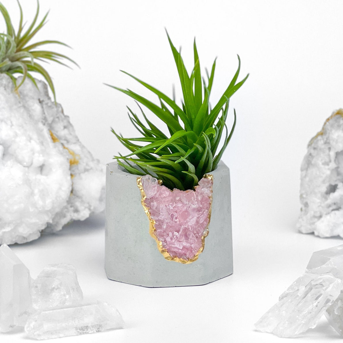 Natural Crystals and Concrete are formed together to create a unique and one-of-a-kind housewarming gift and home accent. Our gorgeous Crystals Tea Lights Holders can be used in a variety of ways from air plant holder, succulent pot, candle holder, jewelry pot to cute cup for small items.
