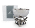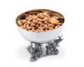 Inspired by an ancient Hindu belief of the world being supported by elephants, the Stainless Nut Bowl - Pewter Elephant Base from our Safari Collection is an absolute marvel. The bowl, crafted from stainless steel, comfortably rests on the raised trunks of 3 intricately detailed, pure pewter elephants. The perfectly sized bowl not only elevates any room's aesthetics but also functionally serves up treats or holds trinkets in elegant style. An embodiment of an exotic realm, it is an ideal unique gift for the animal lovers seeking luxury and sophistication.