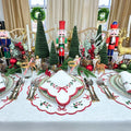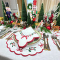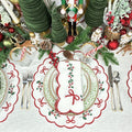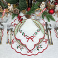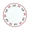 Make your table merry and bright with the premium linen, Studio Collection: Holly & Bows Placemat adorned with exquisite holiday embroidery.