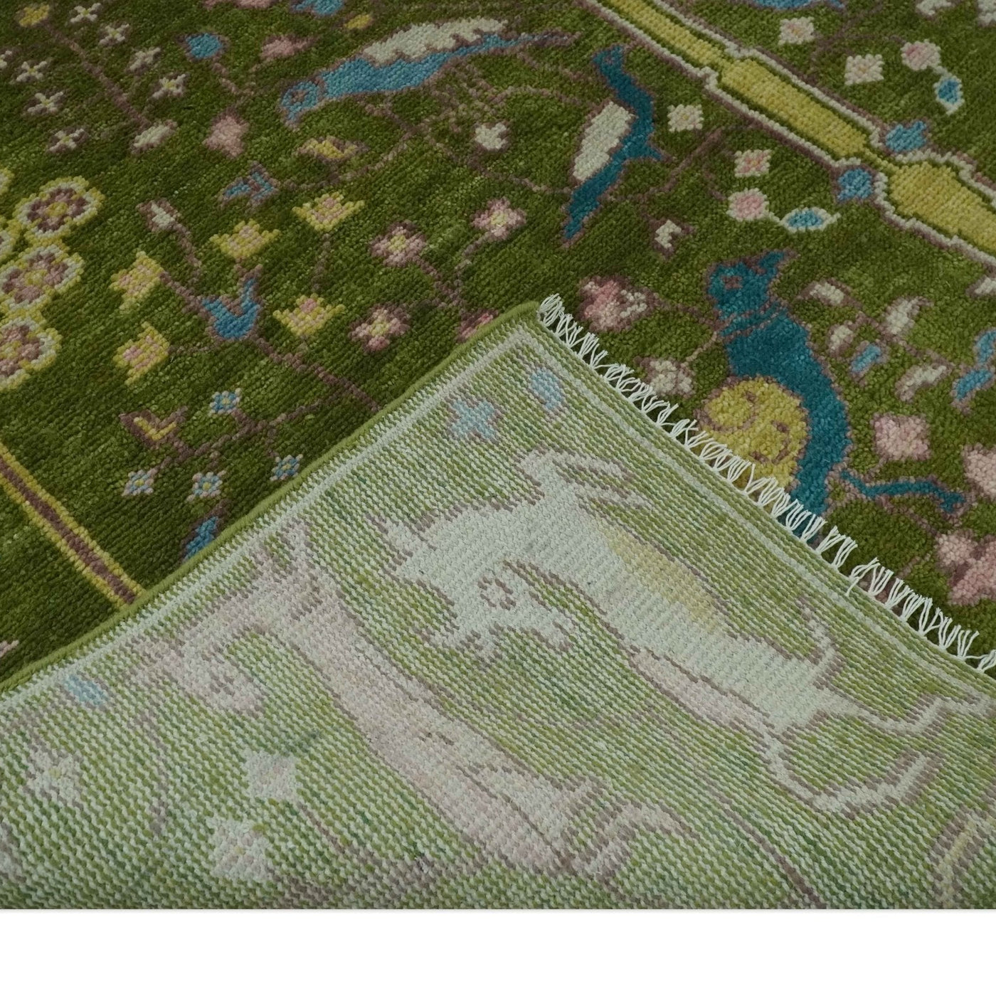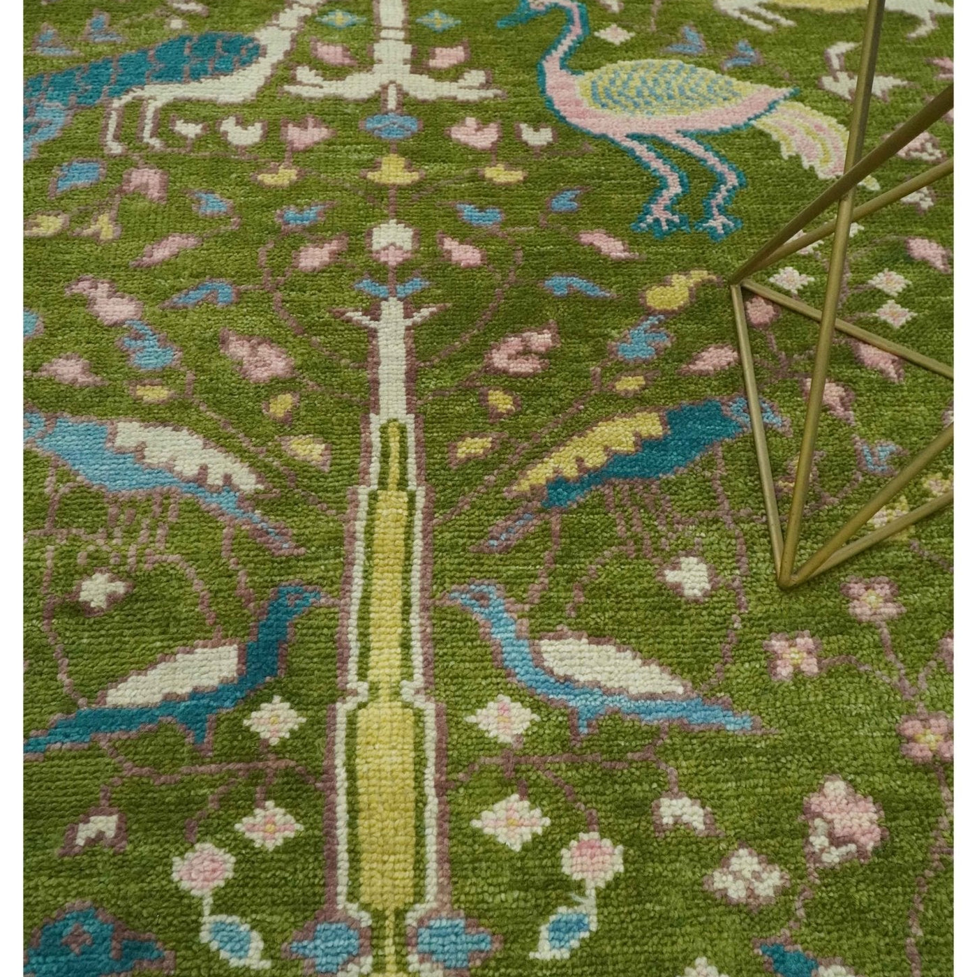 - The Green Jungle Life Teal and Peach Peacock Bird Hand Knotted Custom Made Wool Area Rug