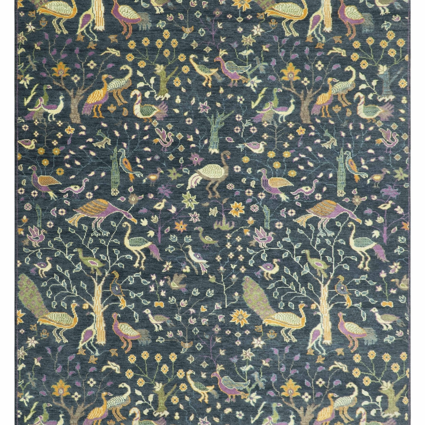 These rugs have been made for centuries and carry a tradition and art. This specific rug is made in India, in the city of Bhadohi. Bhadohi is one of the biggest rug manufacturing cities. Carpet weaving in the region dates back to the 16th century during the reign of Akbar. The skilled artisans of Bhadohi have been carrying the tradition of rug-making for centuries.
