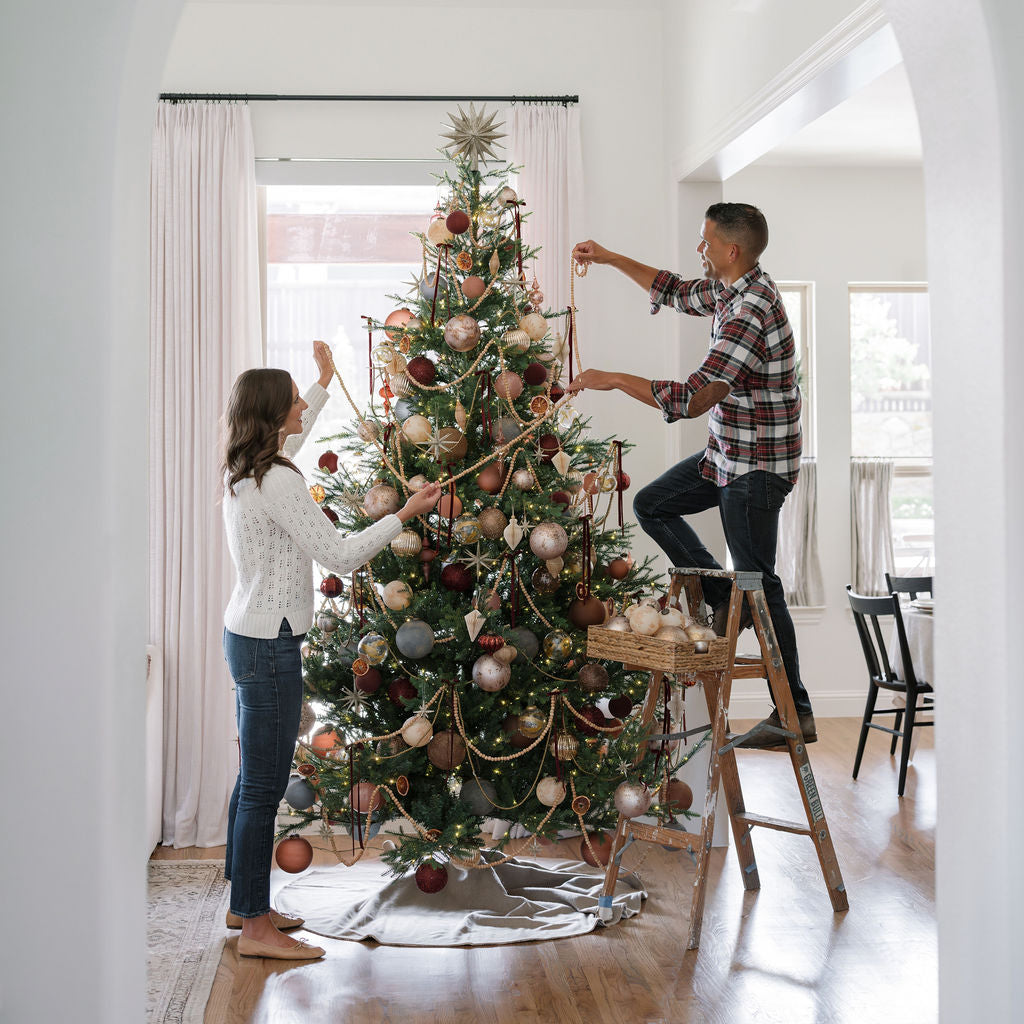 Complete your holiday look with our 60-inch diameter tree skirt. This tree skirt features a convenient tie closure and is reversible for added versatility. Made from a cozy blend of European ticking stripe cotton fabric and natural wool, it brings warmth and sophistication to your festive display. Imported for quality, this tree skirt is the perfect finishing touch to make your Christmas tree stand out.