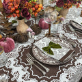 We're particularly drawn to the rich cocoa hue with its crisp white embroidery. It's the kind of color that works beautifully through the seasons—rich enough for autumn gatherings, and warm enough for winter dinners.