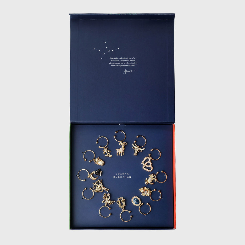 We all love the zodiac ornaments SO much, we wanted to add a gift set of zodiac wine charms! Each one of our unique ornaments has been meticulously scaled down and recreated as a charm.